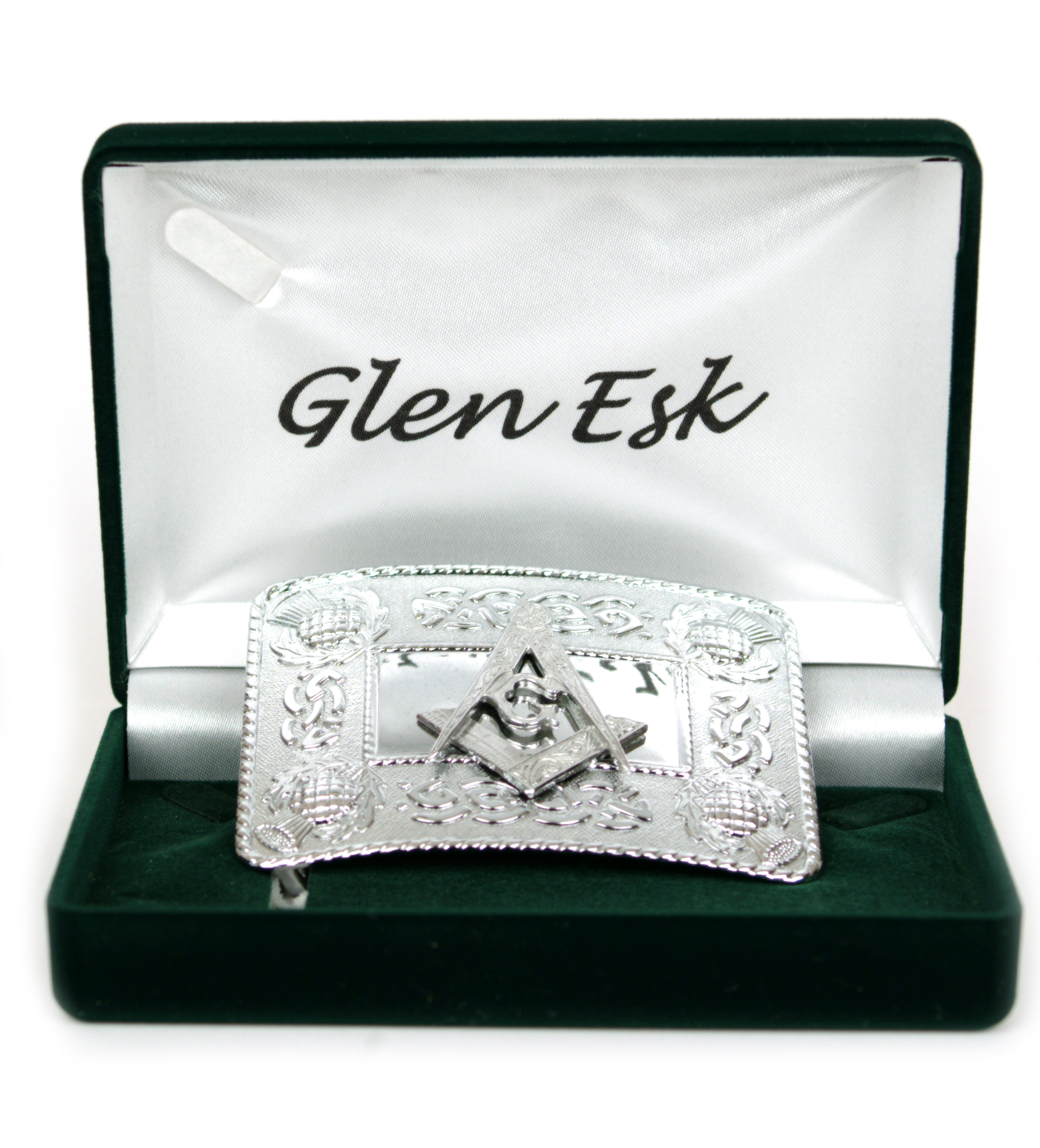“Glen Esk” Masonic silver finish buckle.